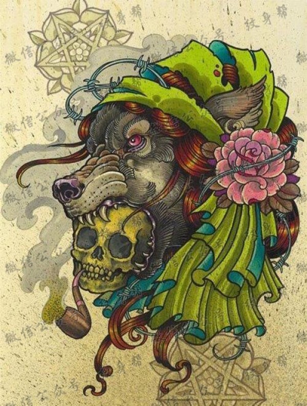 半甲唐狮手稿 传统的9款唐狮主题半甲纹身手稿图片