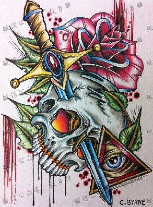 神秘的上帝之眼 骷髅宝剑抽象纹身素材