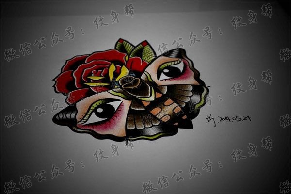 优雅面具玫瑰花精美纹身作品