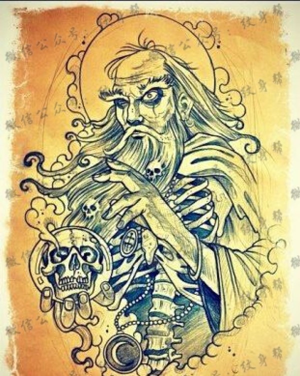 一组满背大气九龙拉棺纹身图案作品和手稿