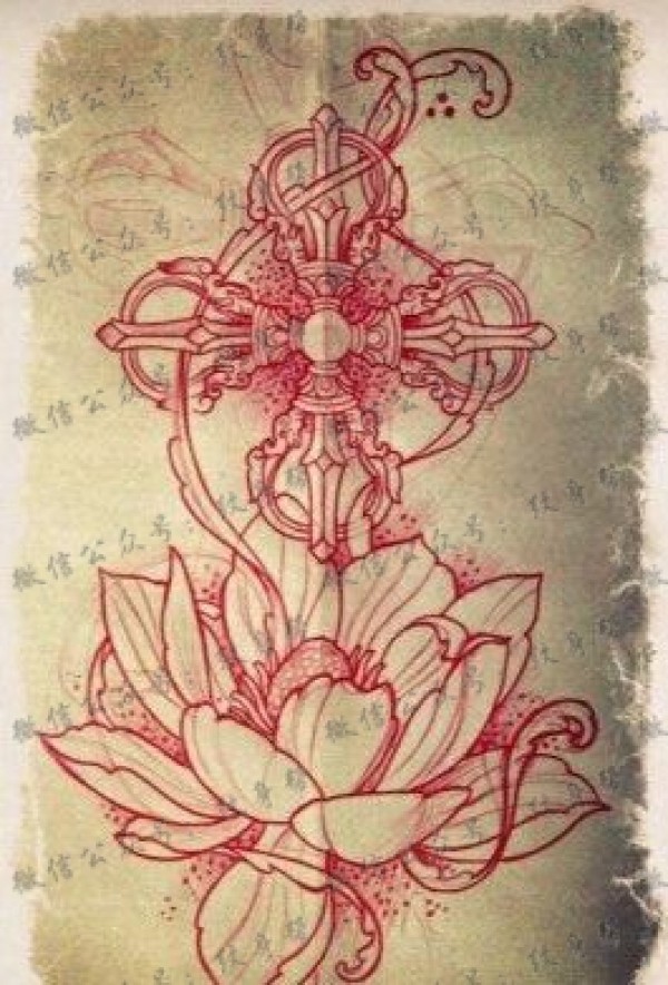 十字玫瑰纹身素材