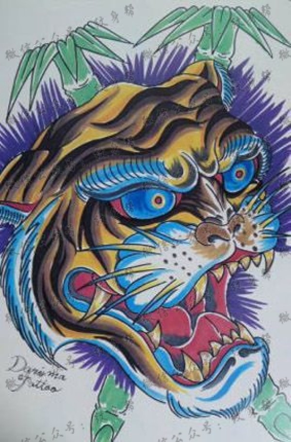 半甲唐狮手稿 传统的9款唐狮主题半甲纹身手稿图片