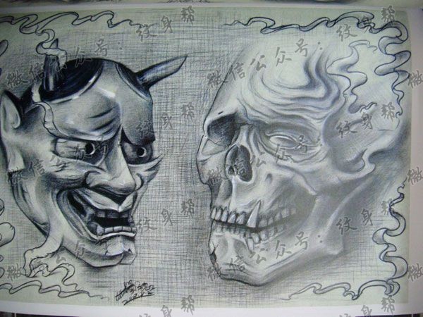 一组满背大气九龙拉棺纹身图案作品和手稿