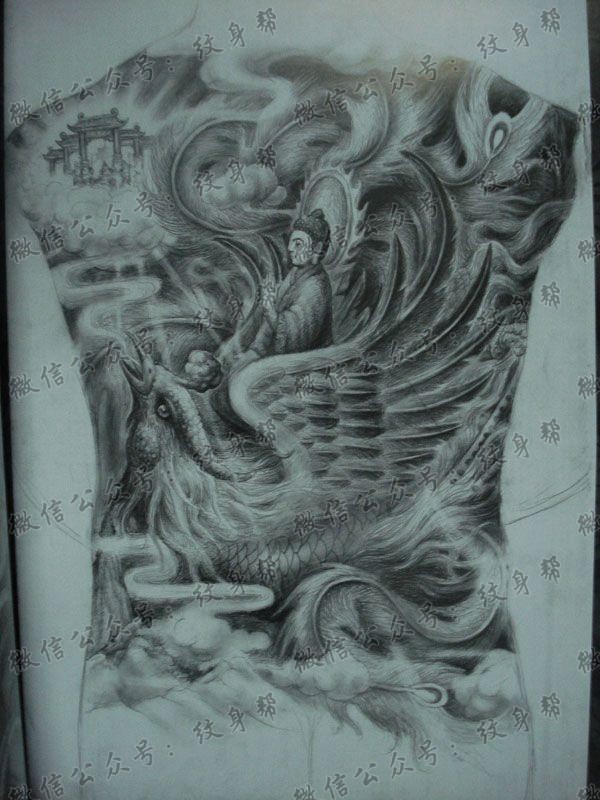 一组满背大气九龙拉棺纹身图案作品和手稿