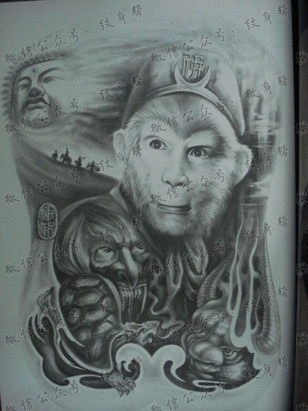 一组满背大气九龙拉棺纹身图案作品和手稿