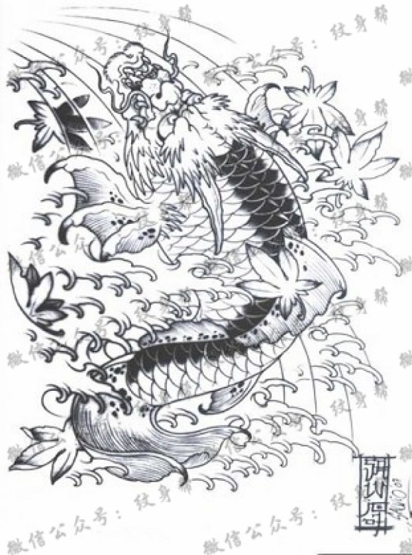 传统的30款鲤鱼纹身手稿图片赏析