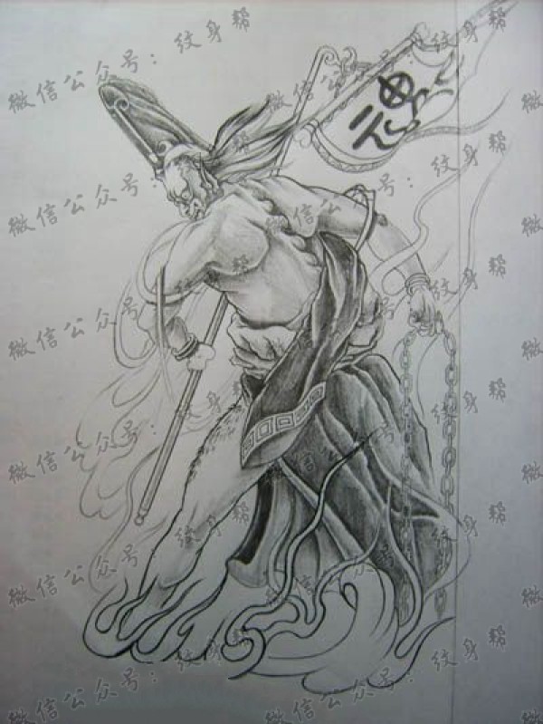 一组满背大气九龙拉棺纹身图案作品和手稿