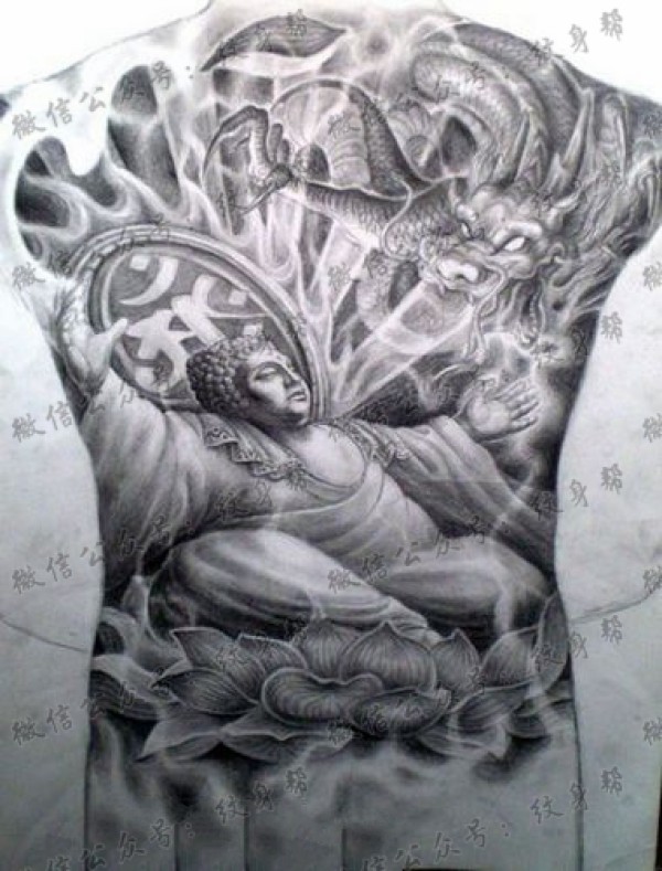 一组满背大气九龙拉棺纹身图案作品和手稿