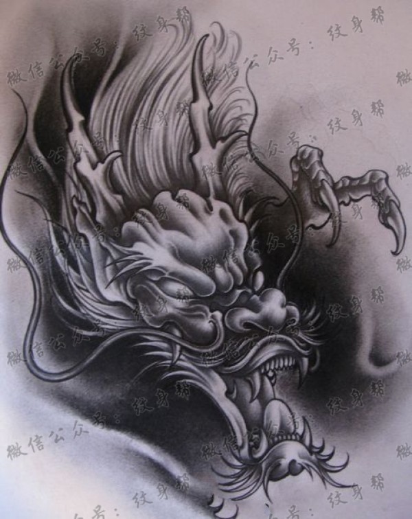 半甲唐狮手稿 传统的9款唐狮主题半甲纹身手稿图片