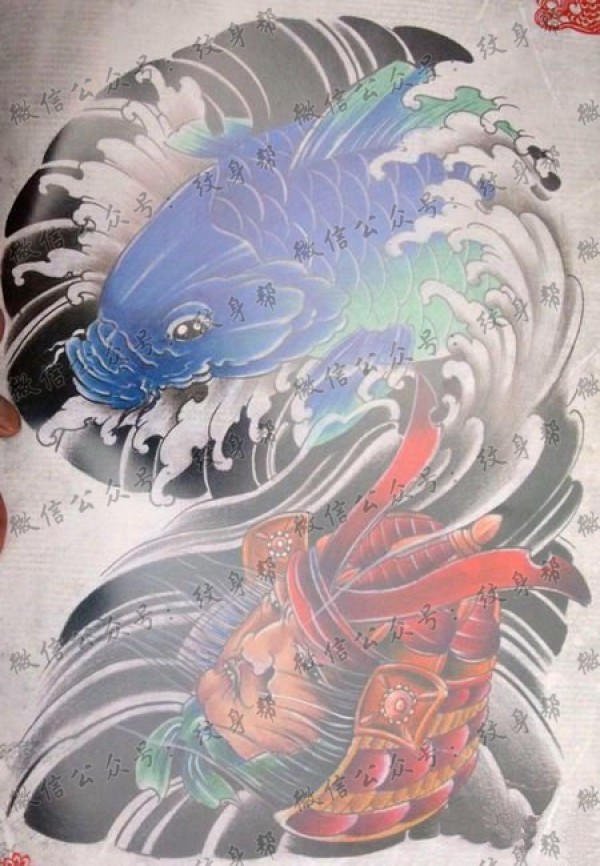 传统的30款鲤鱼纹身手稿图片赏析