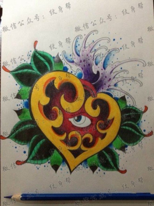 一款漂亮潮流的爱心纹身手稿