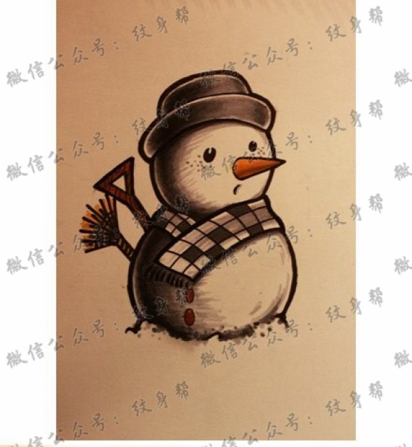 一款潮流时尚的小雪人纹身手稿