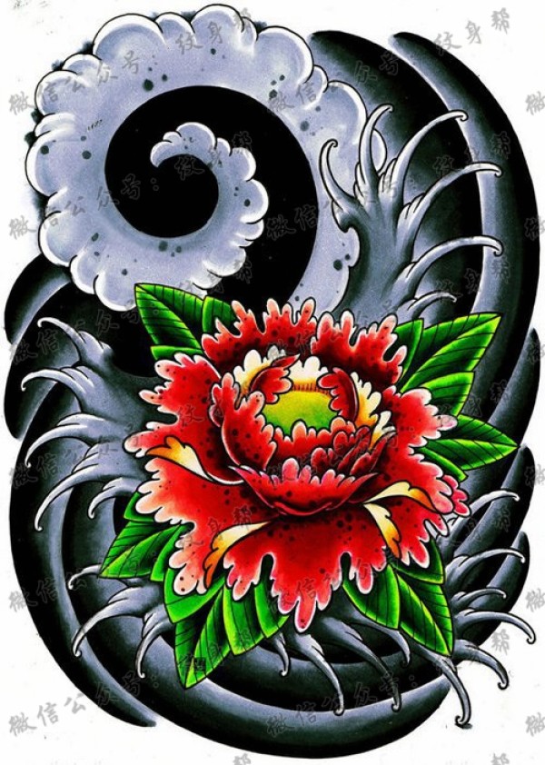 一款时尚漂亮的传统牡丹花纹身手稿