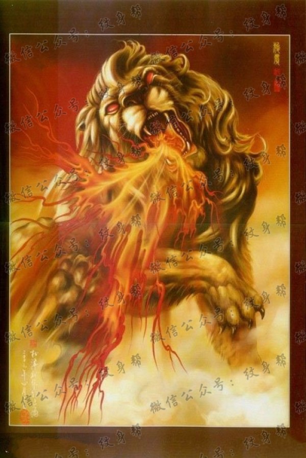 半甲唐狮手稿 传统的9款唐狮主题半甲纹身手稿图片