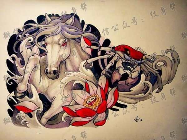 半甲唐狮手稿 传统的9款唐狮主题半甲纹身手稿图片