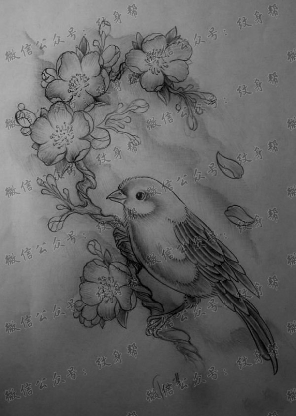一款时尚潮流的喜鹊与梅花纹身手稿