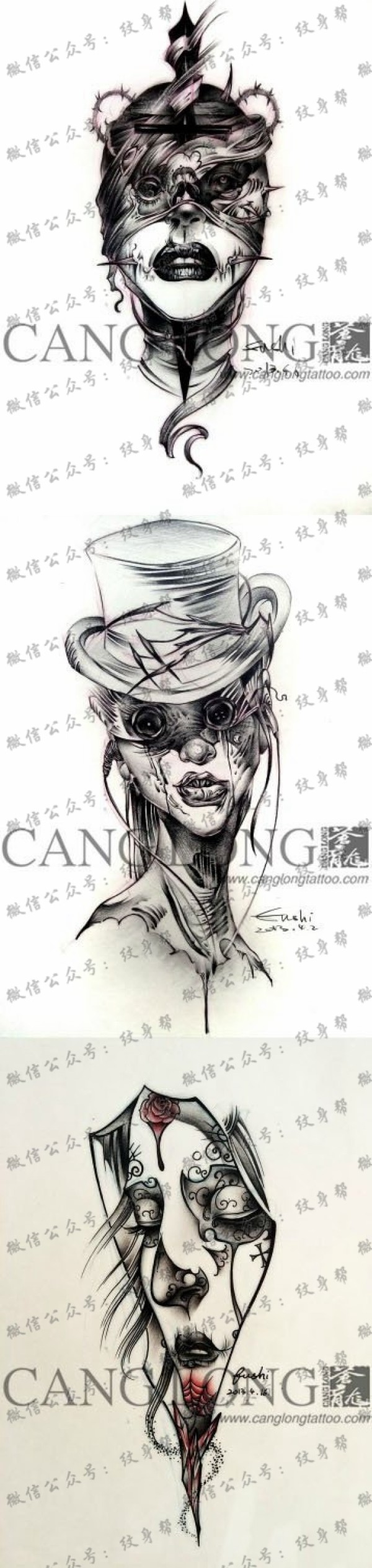 一组潮流另类的亡灵装美女纹身手稿