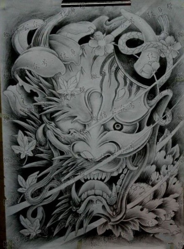 半甲唐狮手稿 传统的9款唐狮主题半甲纹身手稿图片