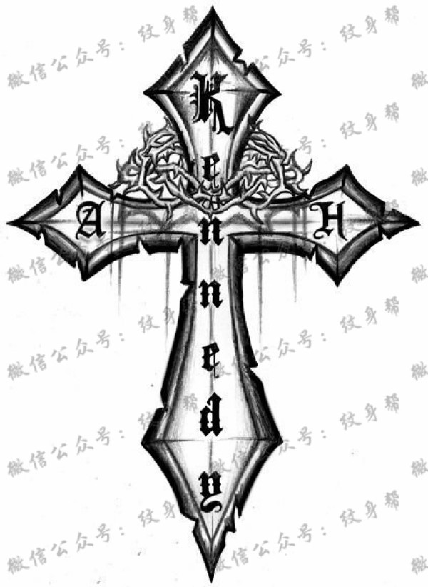 一款流行经典的十字架纹身手稿