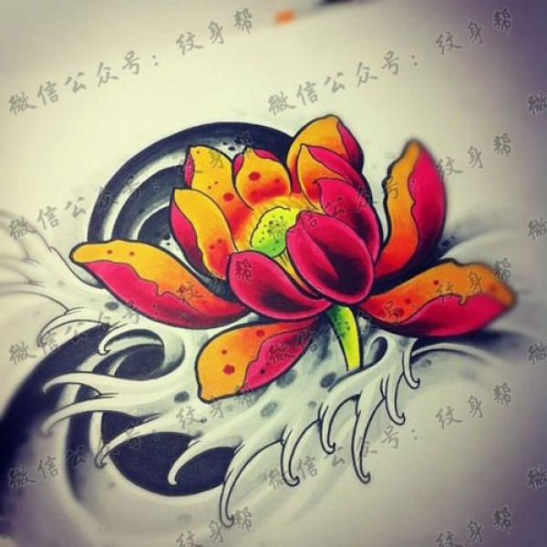 一款唯美时尚的传统莲花纹身图案