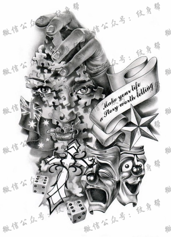 另类很酷的一片拼图小丑纹身图案