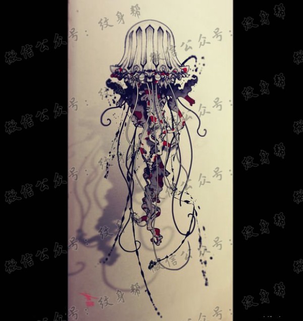 时尚潮流的一款水母纹身手稿