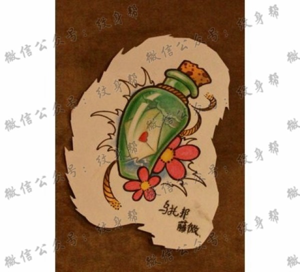 潮流时尚的一款漂流瓶纹身手稿