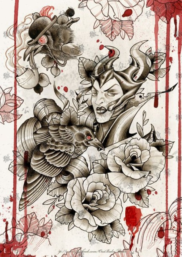一款另类超帅的美女恶魔乌鸦纹身手稿