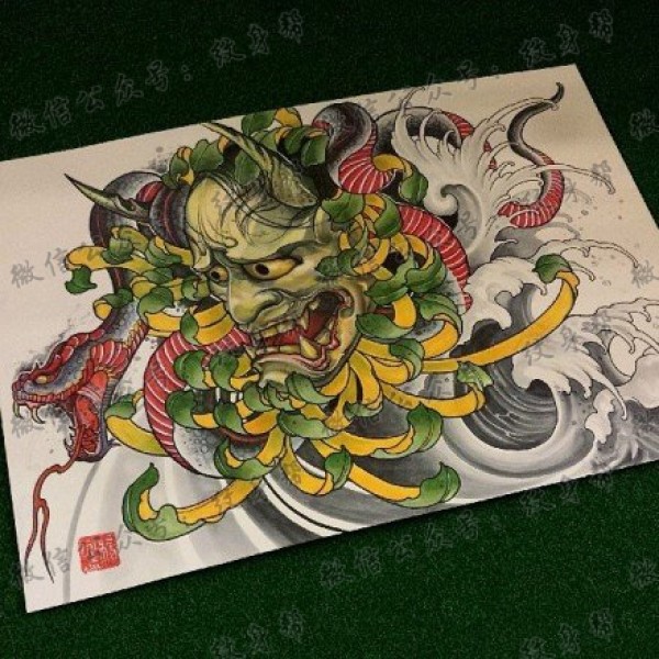 半甲唐狮手稿 传统的9款唐狮主题半甲纹身手稿图片