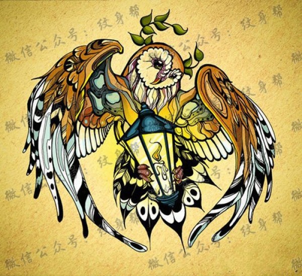 潮流很帅的猫头鹰纹身手稿