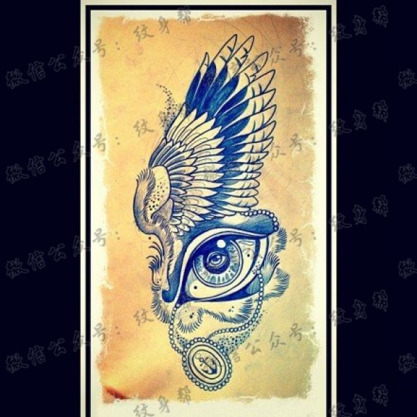 潮流时尚的一款翅膀与眼睛纹身手稿