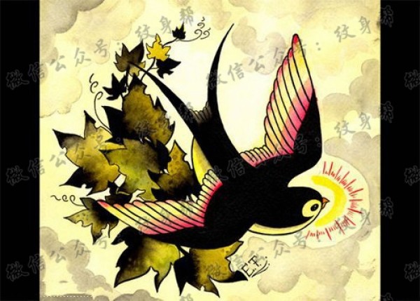 一款时尚精美的小燕子纹身手稿