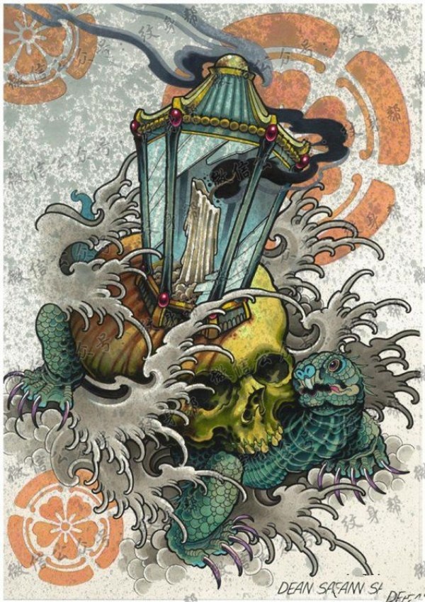 一款经典很酷的乌龟纹身手稿