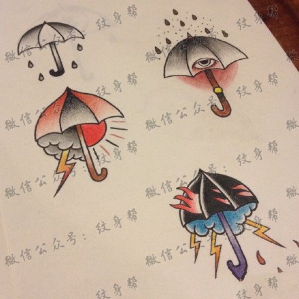 一组时尚精美的雨伞纹身手稿