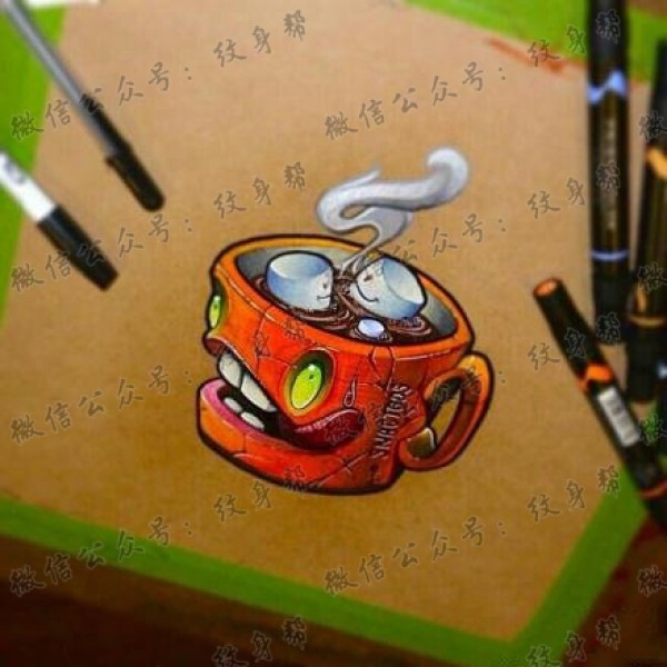 潮流经典的一杯咖啡纹身手稿