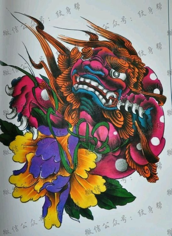 武汉纹身为你推荐一款时尚个性的唐狮纹身图案