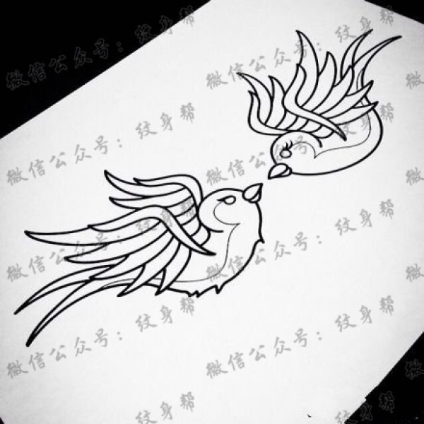 一款精美潮流的纹身燕子素描