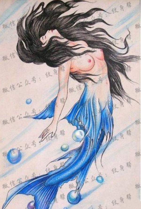 唯美的美人鱼纹身手稿图案