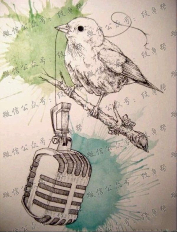 一款素描鸟纹身图案