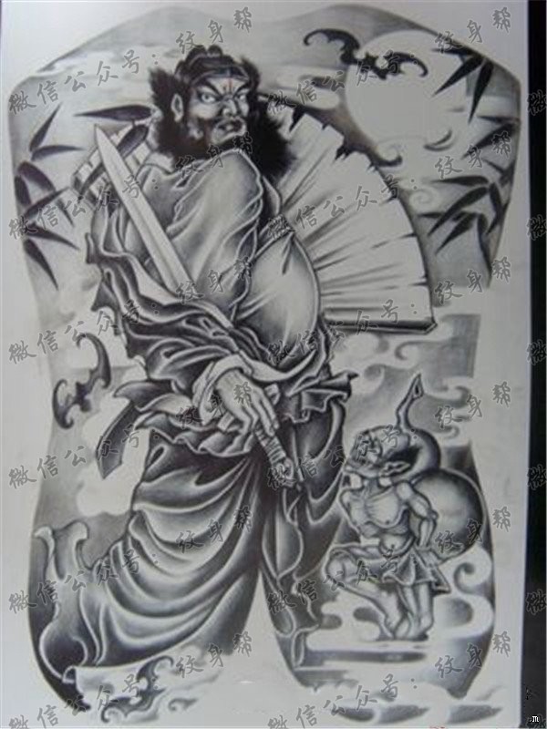 一组满背大气九龙拉棺纹身图案作品和手稿