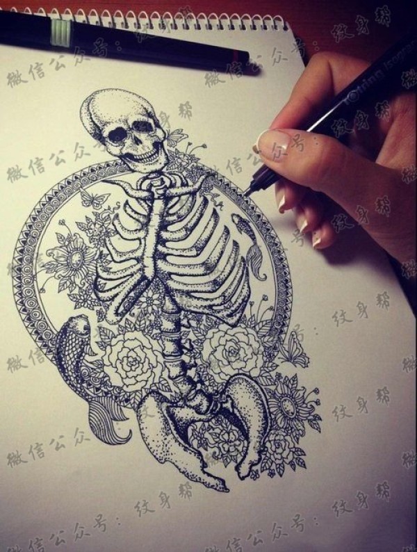 女生喜爱的简单手绘纹身图案来自于纹身师安雅