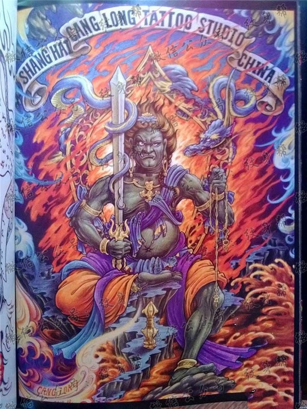 一组满背大气九龙拉棺纹身图案作品和手稿
