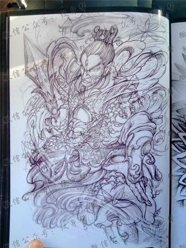 一组满背大气九龙拉棺纹身图案作品和手稿