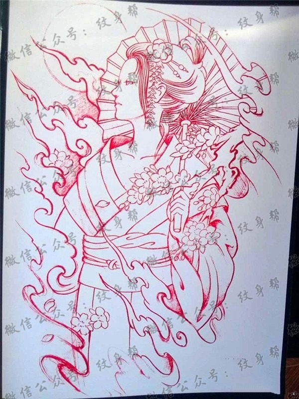 一组满背大气九龙拉棺纹身图案作品和手稿