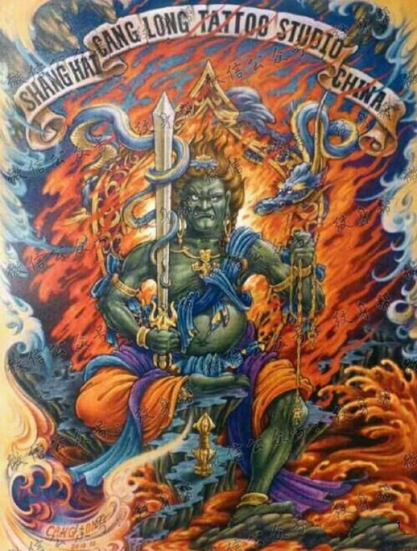 一组满背大气九龙拉棺纹身图案作品和手稿