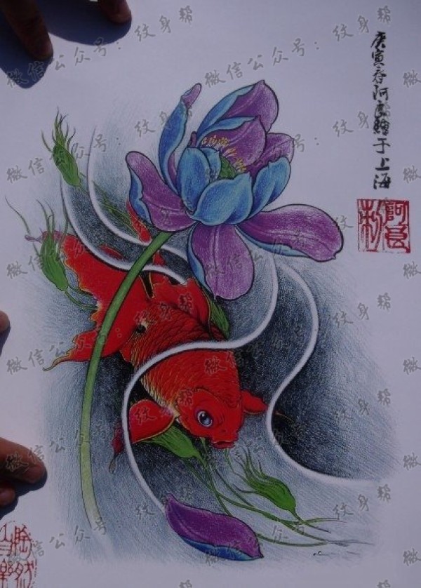 中华锦鲤纹身手稿