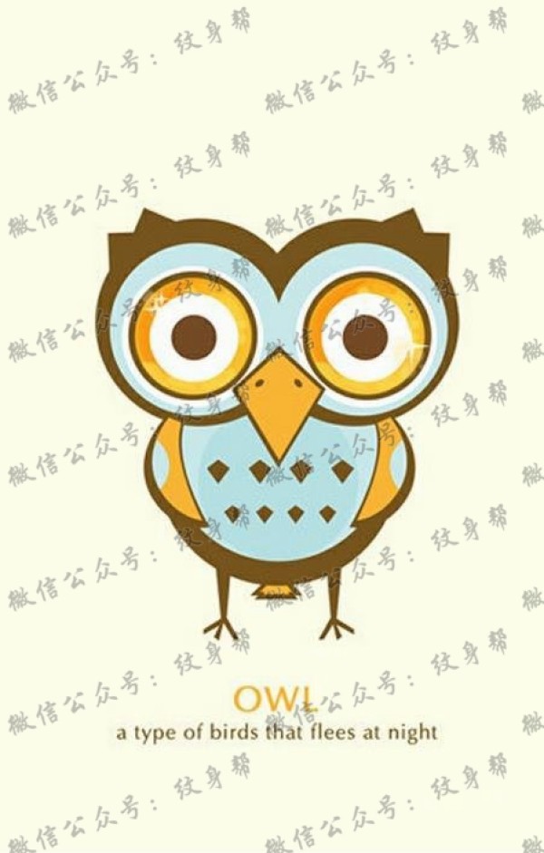 一款卡通猫头鹰纹身手稿图案