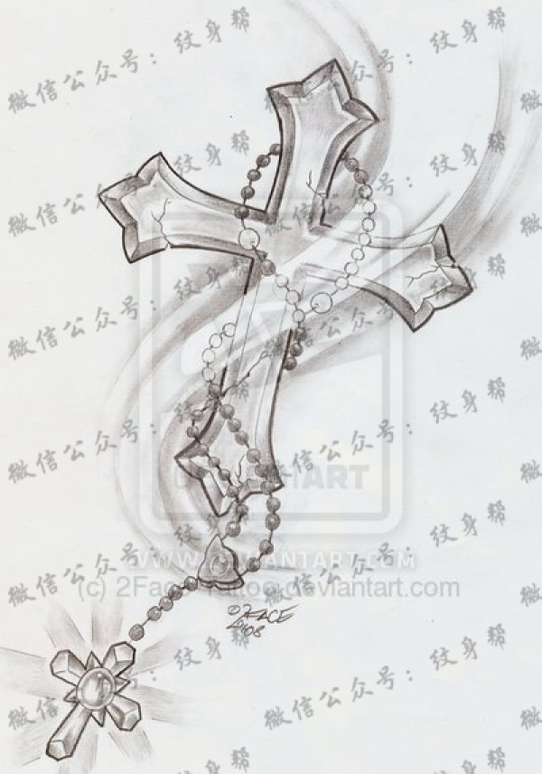 简单的十字架纹身手稿图案