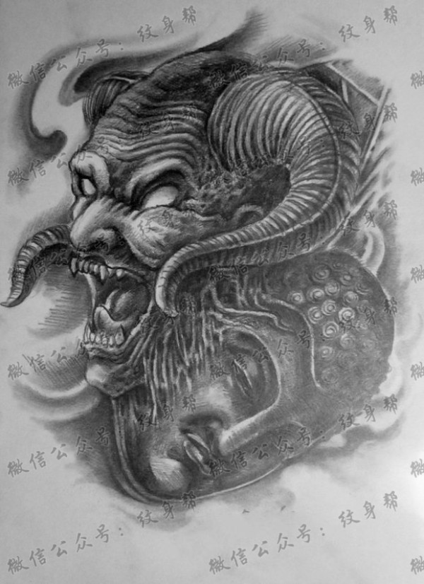 半甲唐狮手稿 传统的9款唐狮主题半甲纹身手稿图片