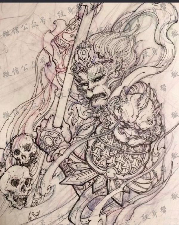 一组27张斗战胜佛齐天大圣孙悟空纹身手稿图案